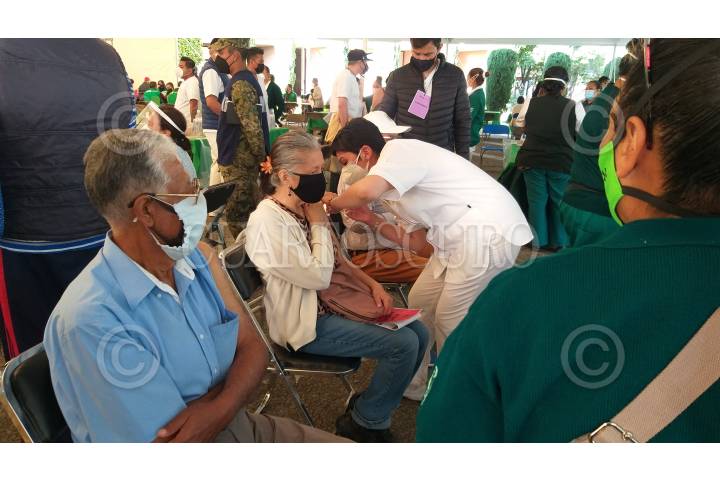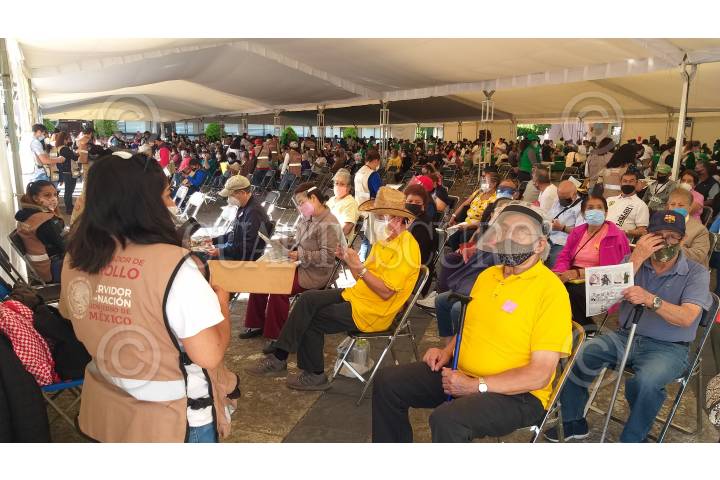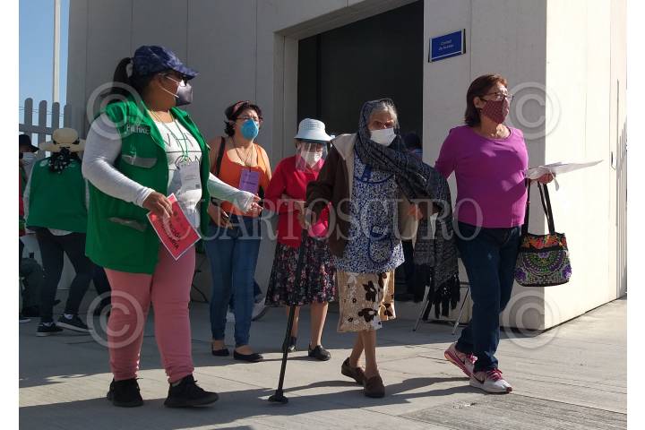 Adultos mayores son vacunados contra el Covid-19 en el módulo ubicado en el CENCIS-Marina, en la alcaldía Coyoacán.