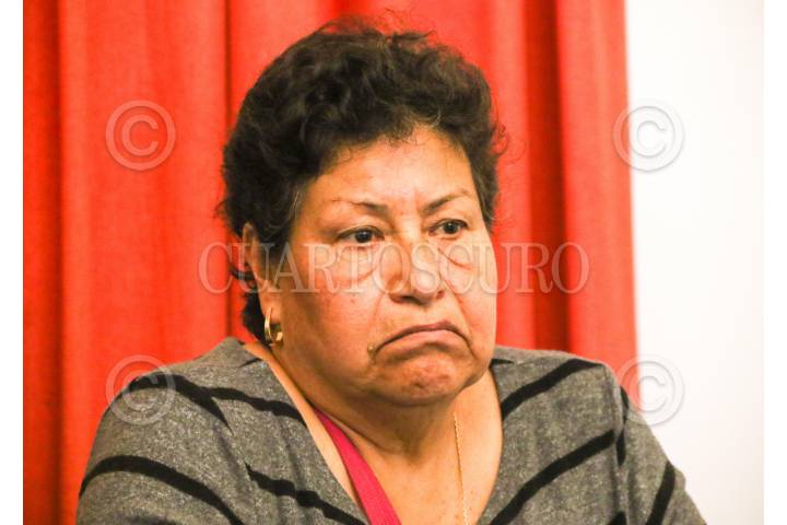 CIUDAD DE MÉXICO. 25AGOSTO2025. Juanita Benítez, hermana de Lupita asesinada por su esposo, demanda que el culpable ya sentenciado continúe en prisión. Ahoy durante la conferencia de prensa de colectivos de familiares de estudiantes víctimas de violencia. FOTO: VICTORIA VALTIERRA/CUARTOSCURO.COM