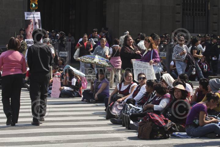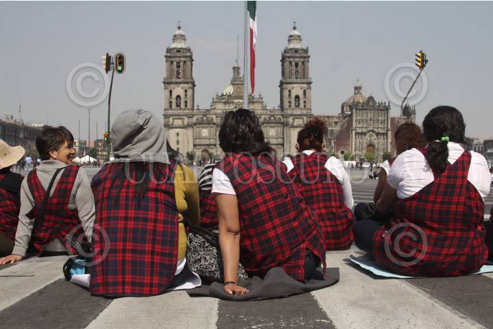 MÉXICO, D.F., 17ENERO2012.- Un grupo de educadoras del CENDIS, se manifestaron sentadas sobre la avenida 20 de noviembre frente al Zócalo capitalino para exigir el pago puntual de sus salarios. FOTO: ENRIQUE ORDÓÑEZ/CUARTOSCURO.COM