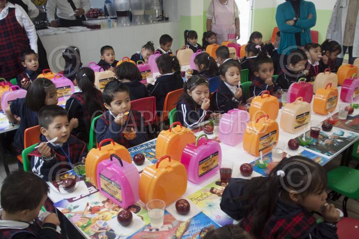 MÉXICO, D.F., 24SEPTIEMBRE2013.- Niños comen en el área del comedor del recién inaugurado Centro Social "Tonaltepec", en la delegación Iztapalapa. FOTO: MOISÉS PABLO /CUARTOSCURO.COM