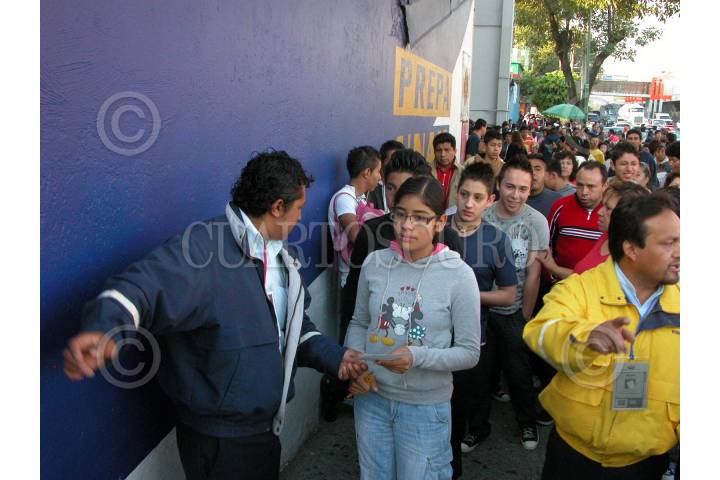 MÉXICO, D.F., 21JUNIO2008.- El día de hoy los jovenes aspirantes a el nivel bachillerato realizaron el examén único de nivel medio superior, en la imagen jovenes formados en las instalaciones de la Universidad Insurgentes en Tlalpan y Viaducto. FOTO: IVÁN MENDEZCUARTOSCURO.COM,