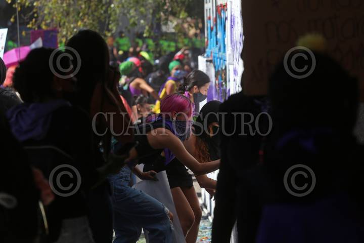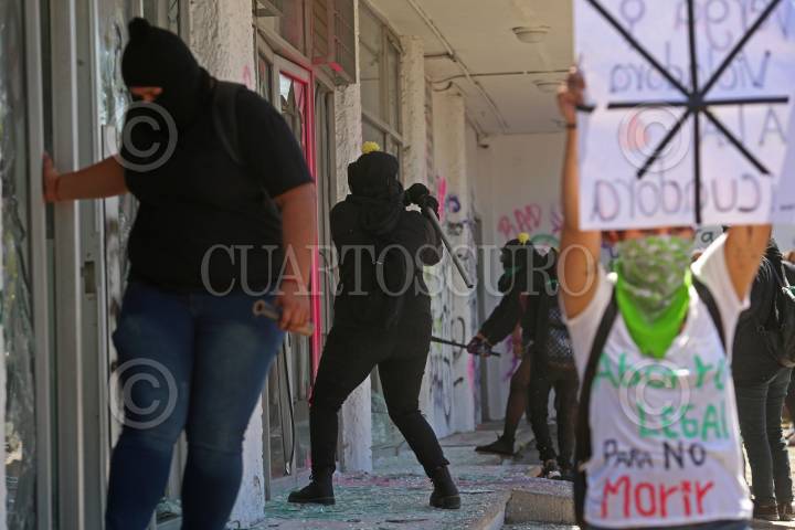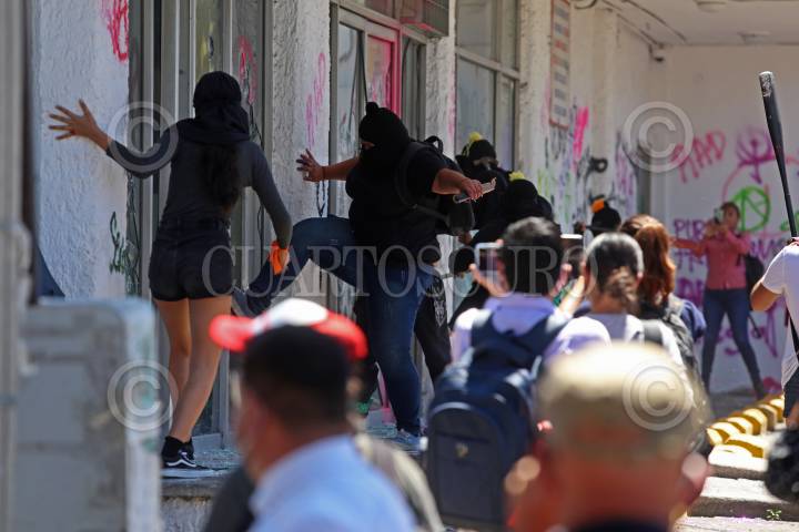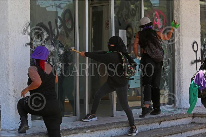 Un grupo radical de manifestantes feministas, vandalizan las instalaciones de una dependencia gubernamental ubicada en avenida circunvalación.