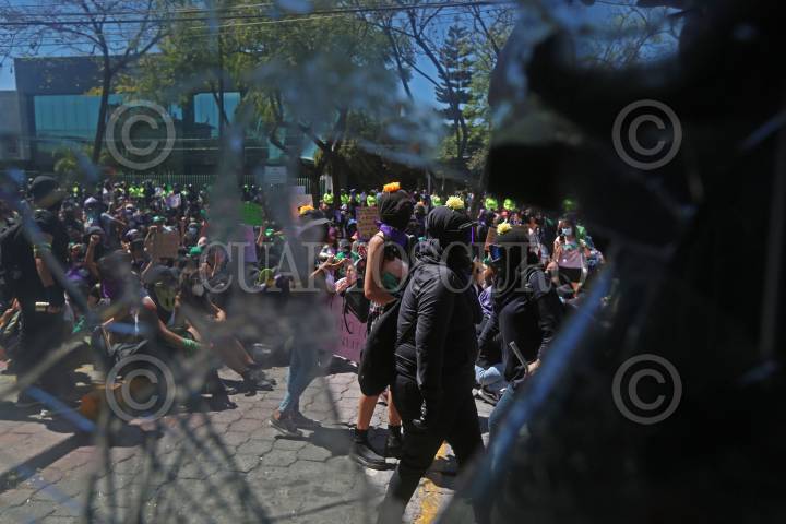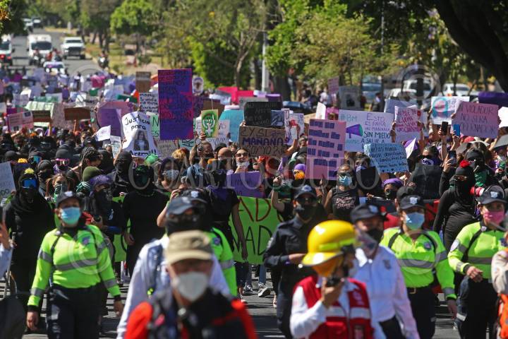 Vista general de la manifestación feminista por el Día Internacional de la Mujer que se llevo a cabo el día de hoy en la ciudad de Guadalajara.