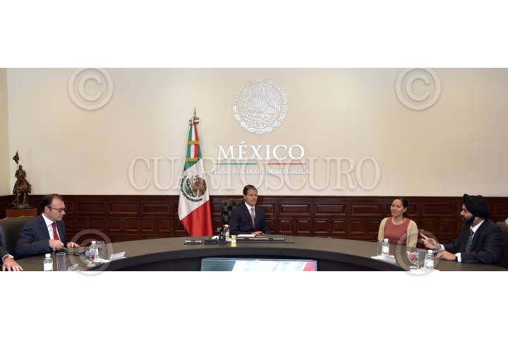 MÉXICO, D.F., 06OCTUBRE2015.- El Primer Mandatario, Enrique Peña Nieto, se reunió hoy con Ajay Banga, Presidente Ejecutivo y del Consejo de Administración de MasterCard. En el encuentro, el directivo de la empresa del sector financiero internacional expresó un reconocimiento al Presidente de la República, por su impulso a las reformas estructurales, porque crean un ambiente favorable para las inversiones, y éstas, a su vez, alientan el crecimiento económico del país. FOTO: PRESIDENCIA /CUARTOSCURO.COM