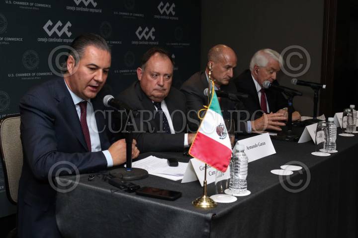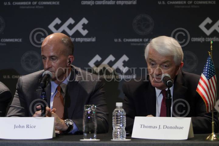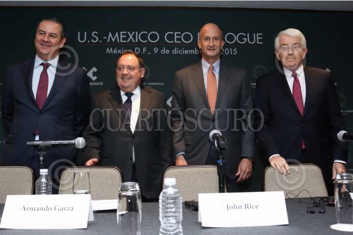 MÉXICO, D.F., 09DICIEMBRE2015.- John Rice, Armando Garza, Gerardo Gutiérrez y Gerardo Gutiérrez durante una conferencia en el marco del Dialogo de CEO Mexico- Estados Unidos. FOTO: ISABEL MATEOS /CUARTOSCURO.COM