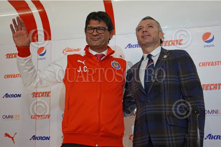 ZAPOPAN, JALISCO, 12JUNIO2018.- José Luis Higuera CEO de Grupo Onmilife Chivas llevo a cabo la presentación de José Saturnino Cardozo como el nuevo estratega del Club Chivas de Guadalajara, esto en la sala de prensa José Ramón Fernández en las instalaciones del Estadio Akron. FOTO: CUARTOSCURO.COM