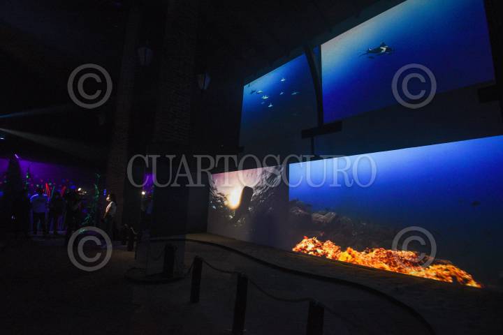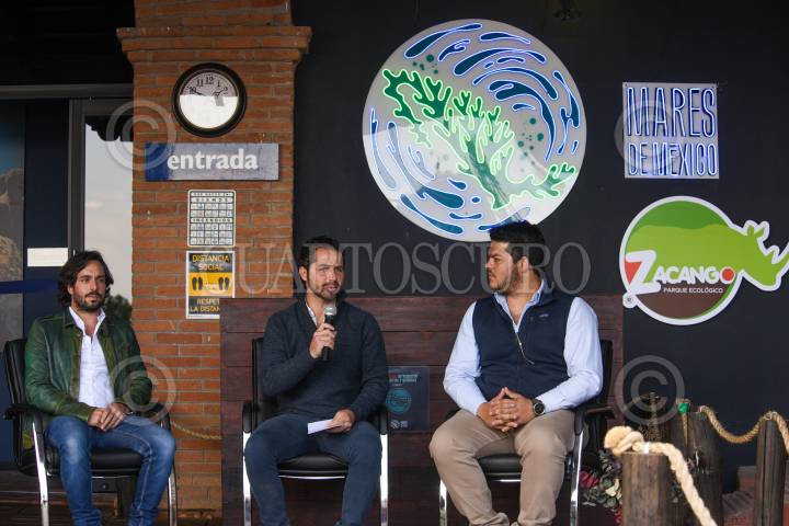Exposición “Mares de México” instalada en el Pabellón Tecnológico del Parque Ecológico de Zacango, en donde los visitantes podrán disfrutar de videos y fotografías de áreas naturales protegidas en México.