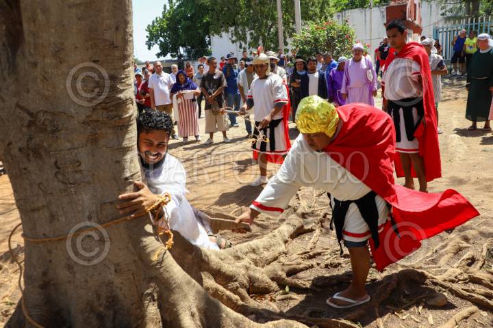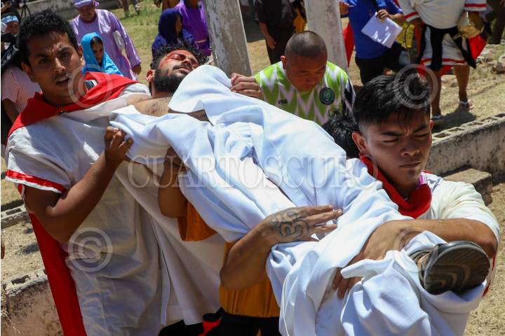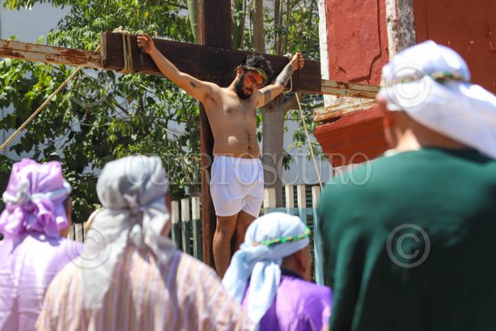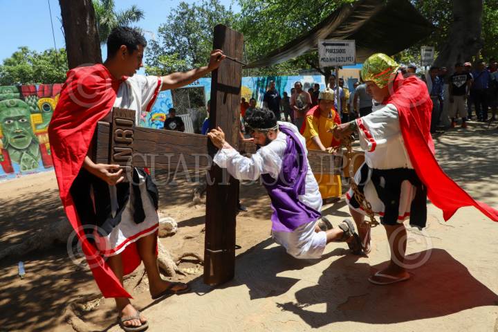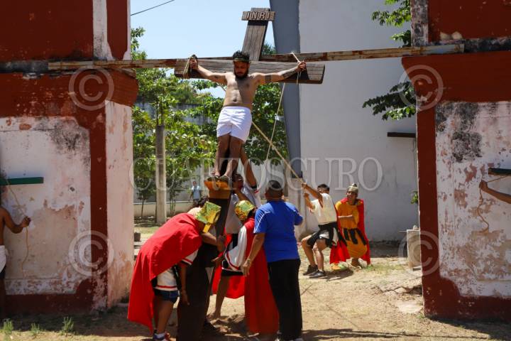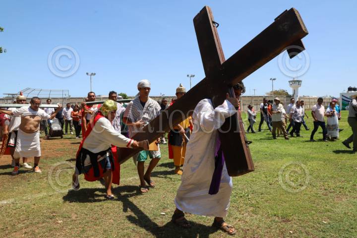 MÉRIDA, YUCATÁN, 29MARZO2024.- Cerca de 60 internos del Centro de Reinserción Social (Cereso) de Mérida realizaron, esta mañana, la representación del tradicional viacrucis de la pasión de Cristo. William A.G. fue el encargado de reencarnar al Nazareno quien prometió terminar su carrera al salir de prisión, actualmente se encuentra cumpliendo una condena a causa de las drogas. Reclusas y reclusos, acompañados de familiares y amigos, además de un grupo de religiosos recorrieron las instalaciones hasta culminar en el patio en donde fue crucificado Jesucristo por los soldados romanos. FOTO: MARTÍN ZETINA/CUARTOSCURO.COM
