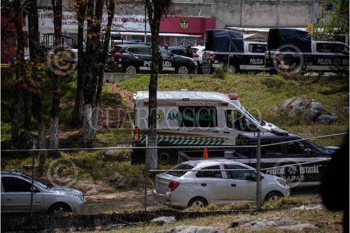 Elementos de la Policía Estatal acuden a las instalaciones del Cerss 5 después del reporte de una riña al interior.