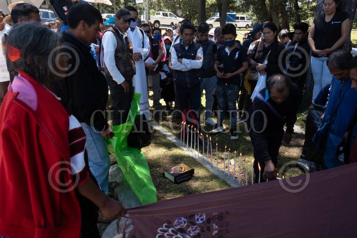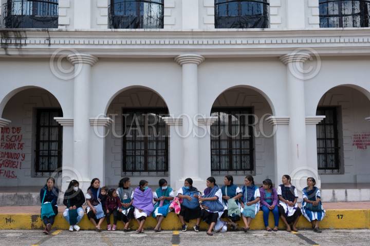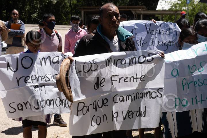 Integrantes del pueblo creyente de diferentes comunidades indígenas de la región acompañados por la diócesis de San Cristóbal de las Casas, el Centro de Derechos Humanos Fray Bartolomé de las Casas, SiPAz y SweFor, se trasladaron a la cabecera de la ciudad para manifestarse por la libertad de sus compañeros frente al Palacio de Justicia de los Altos.