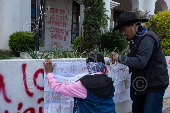 La Colectiva Cereza se manifestó por la libertad de Maricela López Bautista en el Palacio de Justicia de los Altos de Chiapas para exigir su liberación, la acusada es señalada de asesinar a su esposo, aunque ellas señalan que fue en defensa propia ya que se defendió de los machetazos que le propinaba su marido.