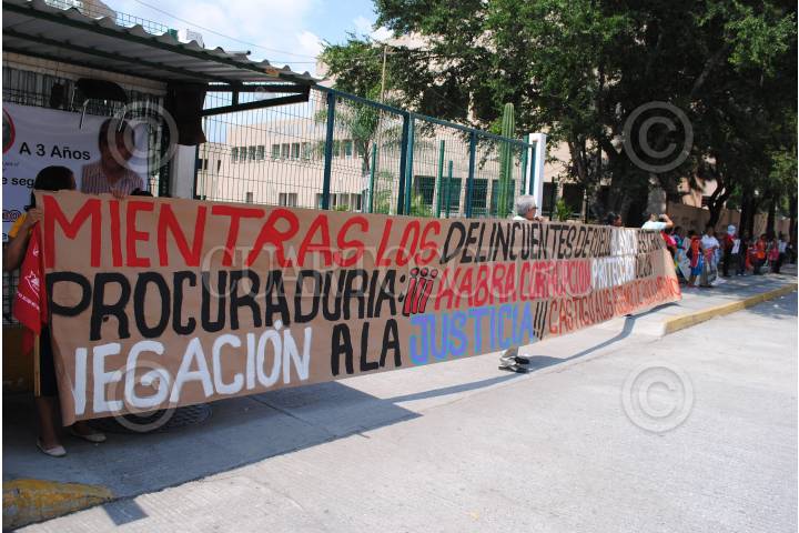 CHILPANCINGO, GUERERRO, 12OCTUBRE2015.- La caravana “Roció de la Esperanza”, proveniente de Atoyac de Álvarez, encabezada por Norma Mesino Mesino, realizaron un mitin frente a la Fiscalía General del Estado, pidieron justicia por la muerte de Roció Mesino Mesino líder de la Organización de Campesinos de la Sierra del SUR (OCSS) en la caravana también participo Juan Mendoza Tapia, líder transportista de la Coordinadora de Transportistas Independientes del Estado de Guerrero (CETIG). Fueron atendidos por el Fiscal Miguel Ángel Godínez Muñoz. FOTO: JOSÉ I. HERNÁNDEZ / CUARTOSCURO.COM