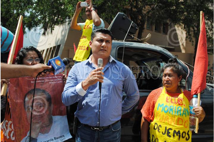 CHILPANCINGO, GUERERRO, 12OCTUBRE2015.- La caravana “Roció de la Esperanza”, proveniente de Atoyac de Álvarez, encabezada por Norma Mesino Mesino, realizaron un mitin frente a la Fiscalía General del Estado, pidieron justicia por la muerte de Roció Mesino Mesino líder de la Organización de Campesinos de la Sierra del SUR (OCSS) en la caravana también participo Juan Mendoza Tapia, líder trasportista de la Coordinadora de Transportistas Independientes del Estado de Guerrero (CETIG). Fueron atendidos por el Fiscal Miguel Ángel Godínez Muñoz. FOTO: JOSÉ I. HERNÁNDEZ / CUARTOSCURO.COM