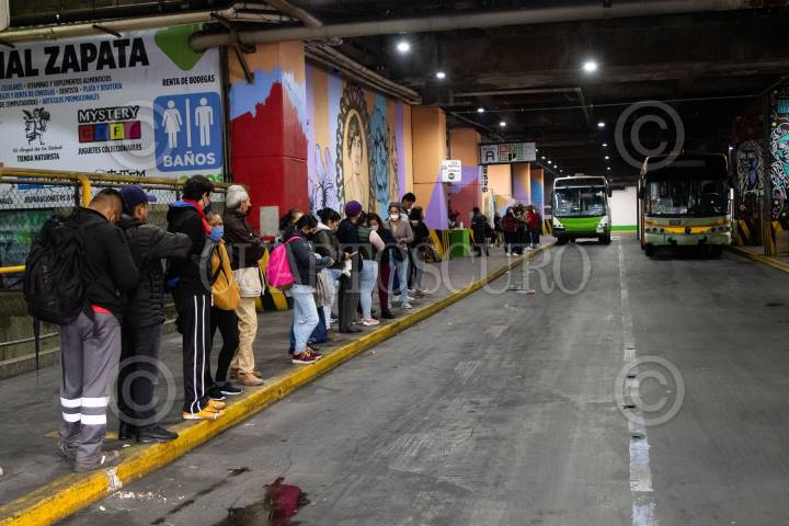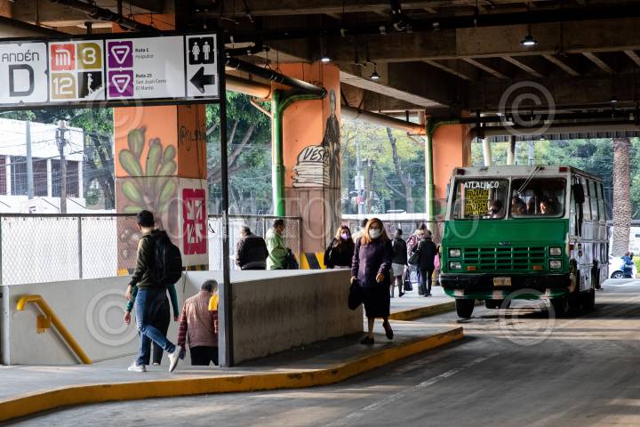 Microbuses esperan pasaje en la CETRAM de Zapata, la cual fue reabierta el día de hoy.