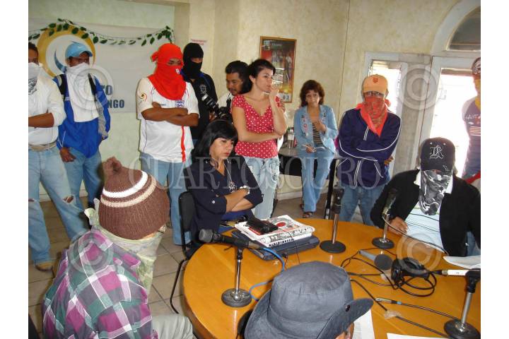 CHILPALCINGO, GUERRERO,18SEPTIEMBRE2007.- Egresados de la normal rural de Ayotzinapa durante la toma de las instalaciones de la radio del gobierno estatal "Soy Guerrero" en la capital del estado, como parte de las acciones que llevan a cabo, para exigir la entrega de plazas para maestros rurales. FOTO:OSCAR ALVARADO/CUARTOSCURO.COM
