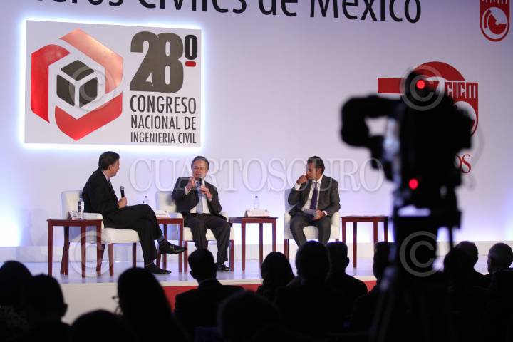 CIUDAD DE MÉXICO, 08MARZO2016.- Leo Zuckermann, comentarista televisivo y Pedro Joaquín Coldwell, secretario de Energía y Enrique Ochoa Reza, director general de la Comisión Federal de Electricidad, durante la mesa redonda: "La Reforma Energética", como parte de las actividades del 28 Congreso Nacional de Ingeniería Civil, realizado en el Hotel de la Ciudad de México. FOTO: ADOLFO VLADIMIR /CUARTOSCURO.COM