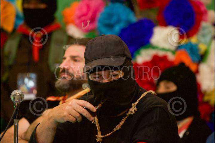 SAN CRISTÓBAL DE LAS CASAS, CHIAPAS, 28DICIEMBRE2024.- Da inicio en la universidad de la Tierra CIDECI los Encuentros Internacionales de Resistencias y Rebeldías organizado por el Ejército Zapatista de Liberación Nacional. En la primera mesa de diálogo fue dirigido por el capitán Insurgente Marcos y el comandante Moisés, quienes agradecieron la participación de académicos y simpatizantes del movimiento por dar su palabra. El auditorio del Cideci se mantuvo en su máxima capacidad, al finalizar la mesa el capitán Marcos fue abordado por los asistentes para tomarse algunas fotografías. FOTO: ISABEL MATEOS /CUARTOSCURO.COM