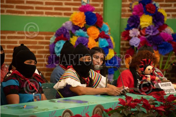 SAN CRISTOBAL DE LAS CASAS, CHIAPAS, 29DICIEMBRE2024.- Se llevó a cabo la Mesa Rebeldía y Resistencias Parte II. Mujeres en la que participaron Anselma, compañera otomí de Casa de los Pueblos y Comunidades Indígenas “Samir Flores Soberanes”, Sylvia Marcos y comandantas del CCRI-CG del EZLN y autoridades de Asambleas de Colectivos de Gobiernos Autónomos Zapatistas en el Cideci-Unitierra ubicado al norte de la ciudad. FOTO: ISABEL MATEOS /CUARTOSCURO.COM