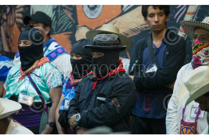 SAN CRISTÓBAL DE LAS CASAS, CHIAPAS, 30DICIEMBRE2016.- Estudiantes zapatistas durante el inicio de la novena sesión del encuentro "Los zapatistas y las ConCiencias por la Humanidad" realizado en el Auditorio del Centro Indígena de Capacitación Integral (CIDECI). Encuentro de análisis y reflexión sobre las Ciencias, realizado del 26 de diciembre al 4 de enero de 2017, convocado por el Ejercito Zapatista de Liberación Nacional (EZLN) en el marco del Congreso Nacional Indígena. FOTO: ADOLFO VLADIMIR /CUARTOSCURO.COM