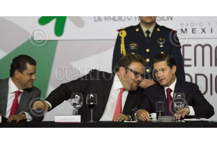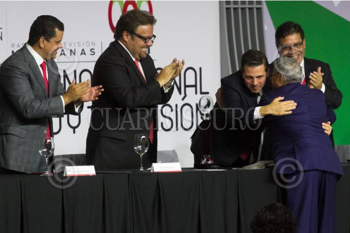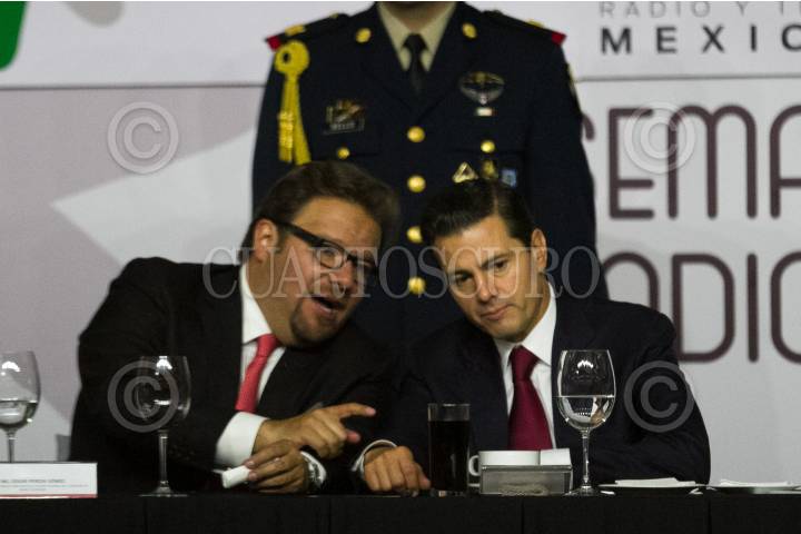 CIUDAD DE MEXICO, 03MAYO2018.- Enrique Peña Nieto, Presidente de México, y Edgar Pereda Gómez, presidente de la CIRT, durante la 59 Semana Nacional de la Radio y la Televisión. FOTO: MOISÉS PABLO /CUARTOSCURO.COM
