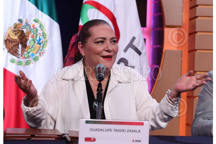CIUDAD DE MÉXICO, 14FEBRERO2024.- Guadalupe Taddei Zavala, consejera presidenta del Instituto Nacional Electoral (INE) durante la Firma de Convenio con la Cámara Nacional de la Industria de Radio y Televisión (CIRT) e INE que se llevó a cabo en las Instalaciones de la XEW. FOTO: ANDREA MURCIA /CUARTOSCURO.COM