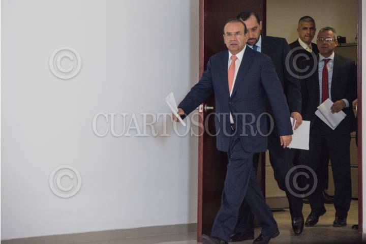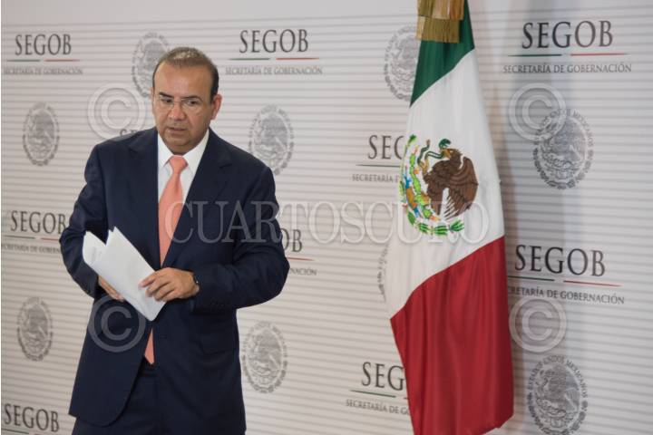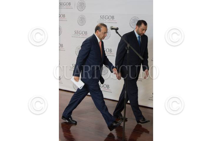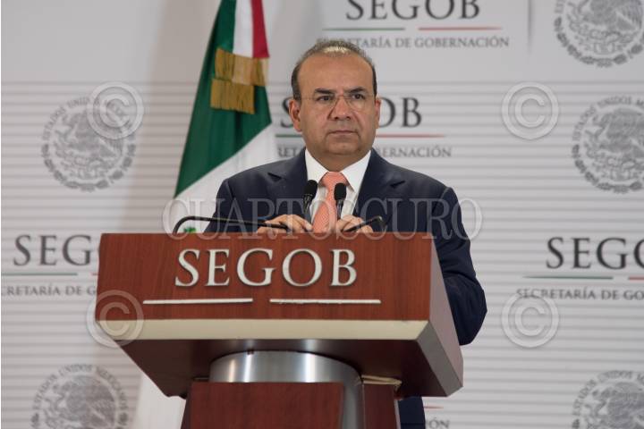 CIUDAD DE MÉXICO, 14FEBRERO2018.- Alfonso Navarrete Prida, secretario de Gobernación, durante conferencia de prensa, indicó que los hechos de monitoreo y seguimiento del Centro de Investigación y Seguridad Nacional (Cisen) al precandidato de la alianza “Por México al Frente” Ricardo Anaya, fue planeado en coolaboración con el Gobierno de Veracruz, para garantizar la seguridad en el evento proselitista. Además, el secretario de Gobernación, informó que se suspendió al subdelegado del Cisen en Veracuz, por no haber notificado el caso. FOTO: MARIO JASSO /CUARTOSCURO.COM