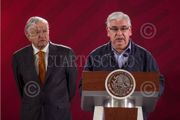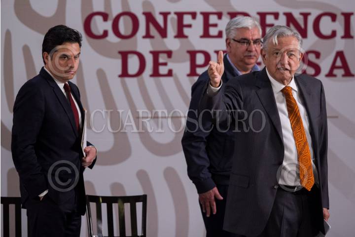 CIUDAD DE MÉXICO, 01MARZO2019.- Zoe Robledo, subsecretario de Gobernación, y Andrés Manuel López Obrador, presidente de México, durante la conferencia matutina, en Palacio Nacional, para informar sobre la descalcificación de documentos pertenecientes a la Dirección General de Seguridad. Con esta acción, el jefe del ejecutivo destacó que la transparencia es un fortalecimiento al estado de derecho. FOTO: GALO CAÑAS /CUARTOSCURO.COM