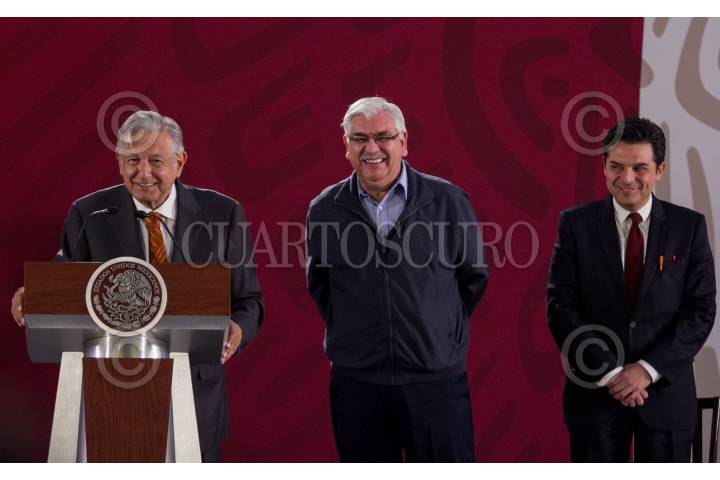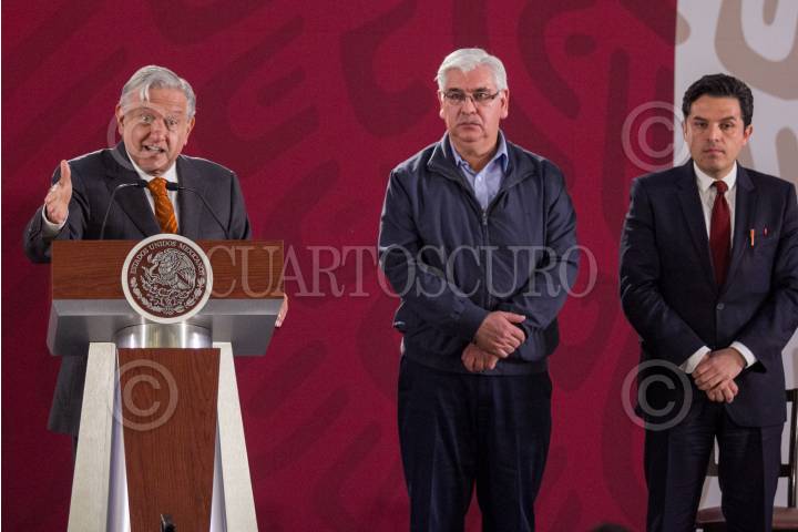CIUDAD DE MÉXICO, 01MARZO2019.- Zoe Robledo, subsecretario de Gobernación, Carlos Ruiz Abreu, director del Archivo General de la Nación, y Andrés Manuel López Obrador, presidente de México, durante la conferencia matutina, en Palacio Nacional, para informar sobre la descalcificación de documentos pertenecientes a la Dirección General de Seguridad. Con esta acción, el jefe del ejecutivo destacó que la transparencia es un fortalecimiento al estado de derecho. FOTO: GALO CAÑAS /CUARTOSCURO.COM