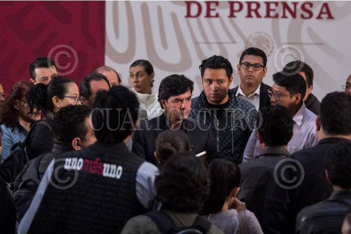 CIUDAD DE MÉXICO, 01MARZO2019.- Jesús Ramírez Cuevas, vocero de la Presidencia, conversó con representantes de los medios de comunicación al termino de la conferencia matutina del presidente Andrés Manuel López Obrado, en Palacio Nacional, donde se informó sobre la descalcificación de documentos pertenecientes a la Dirección General de Seguridad. FOTO: GALO CAÑAS /CUARTOSCURO.COM
