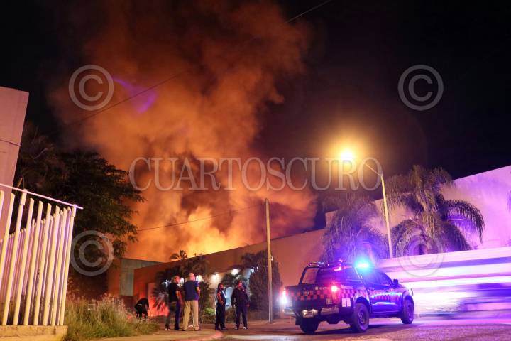 El fuego consume una fábrica de cosméticos en Jiutepec.