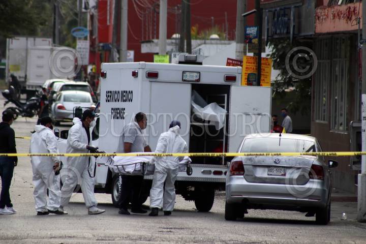 Escena de un crimen en la calle 48 norte de CIVAC, un hombre fue asesinado cuando esperaba dentro de su auto en una zona comercial.
