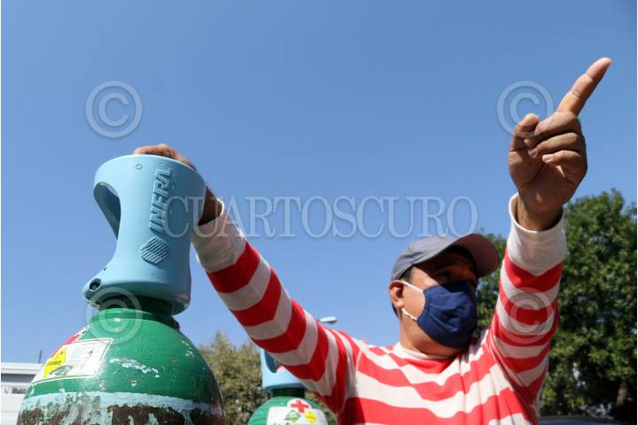 Un hombre originario de Jolalpan, Puebla, viajó hasta este municipio para llenar dos tanques de oxígeno.