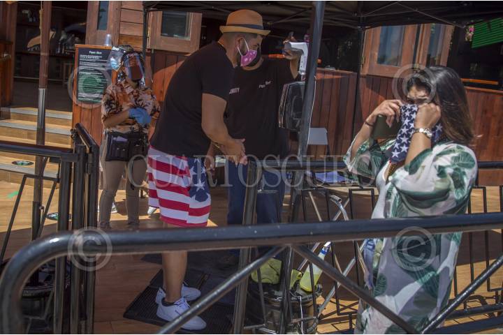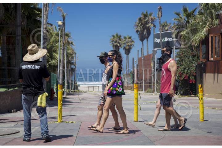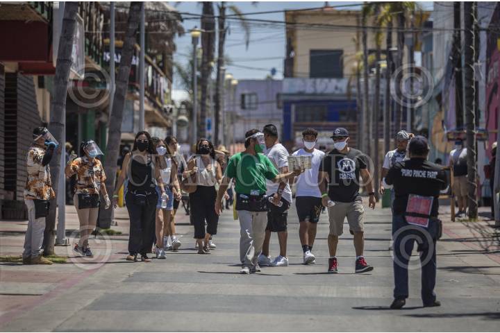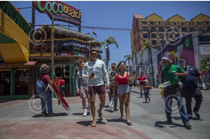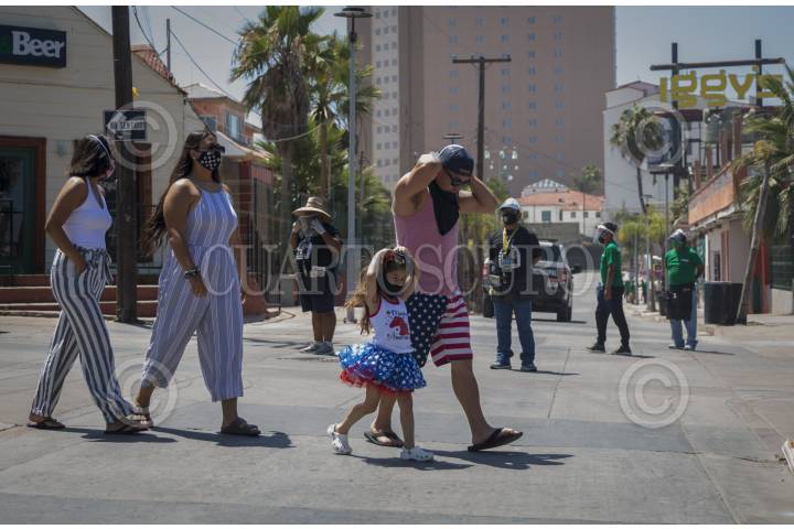 Cientos de turistas cruzan a México para festejar el día feriado a pesar de las medidas restrictivas en ambos lados de la frontera.