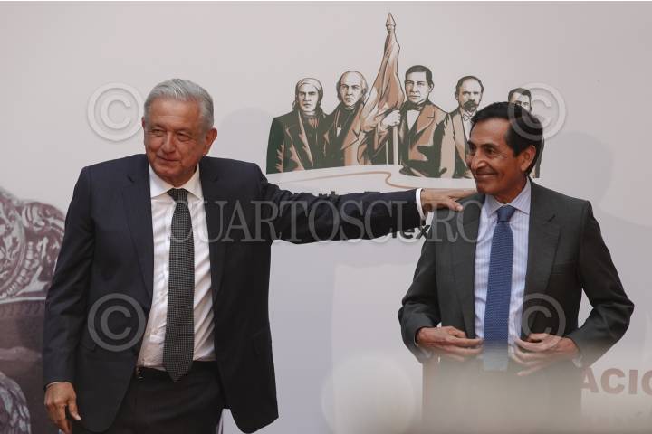 Andrés Manuel López Obrador, presidente de México, y Rogelio Ramírez de la O, secretario de Hacienda y Crédito Público, durante la ceremonia del CIX Aniversario luctuoso de Francisco I. Madero, realizado en el Patio de Honor del Palacio Nacional
