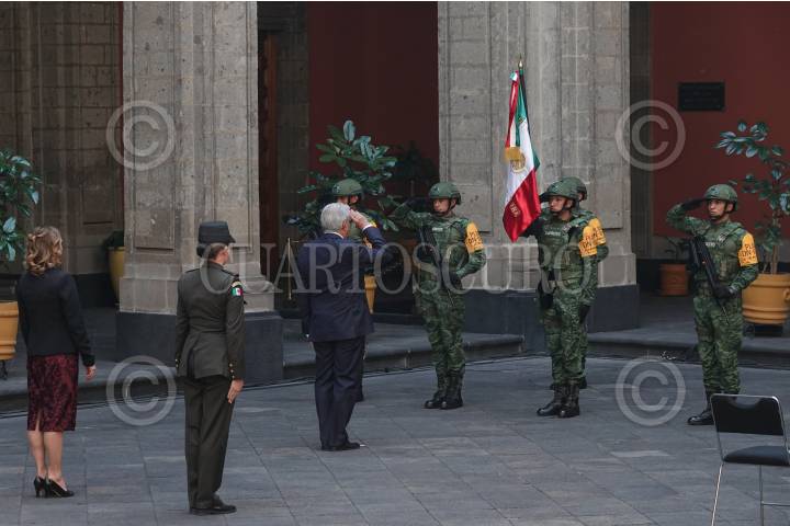 Andrés Manuel López Obrador, presidente de México, saludó a la bandera durante la ceremonia del CIX Aniversario luctuoso de Francisco I. Madero, realizado en el Patio de Honor del Palacio Nacional