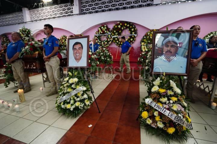 TACÁMBARO, MICHOACÁN, 06JUNIO2025. Guardia de honor durante los servicios funerarios del alcalde Salvador Bastida García y su escolta Pastor Cortés Álvarez, quienes fueron asesinado la noche de ayer cuando viajaban a bordo de una camioneta Ford. Las causas del doble crimen todavía no han sido esclarecidas y la Fiscalía local ya trabaja en el caso. FOTO: JUAN JOSÉ ESTRADA SERAFÍN/CUARTOSCURO.COM