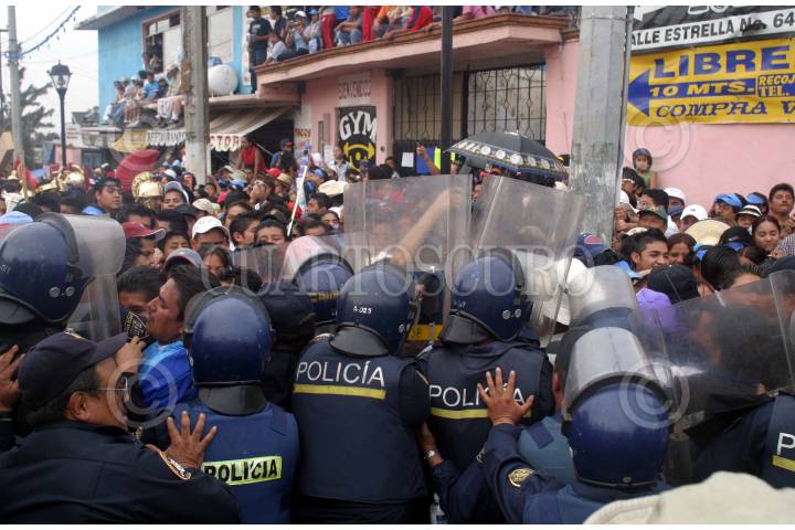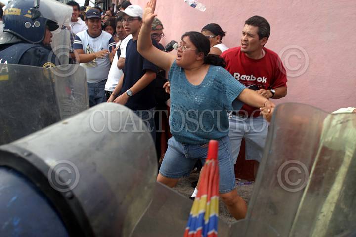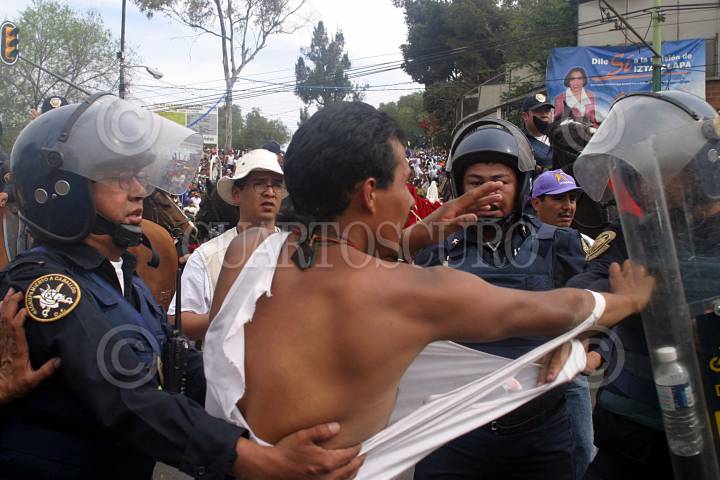MEXICO, D.F., 25MARZO2005.- Algunas personas discutieron con los granaderos por que les impideron el paso hacia el Cerro de la Estrella, durante la representación de la Pasión de Cristo. FOTO: Moisés Pablo/CUARTOSCURO.COM