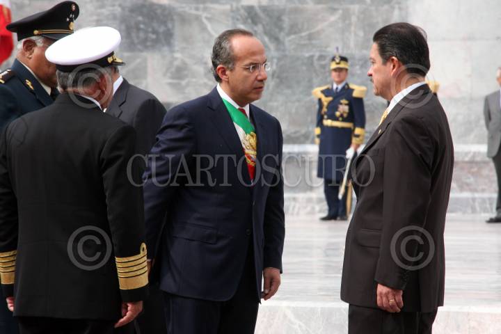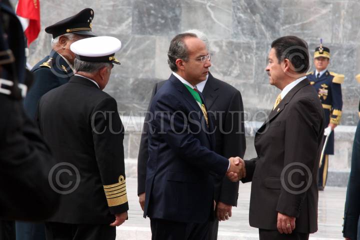 MÉXICO, D.F., 13SEPTIEMBRE2009.- Carlos Navarrete Ruiz, Presidente del Senado de la República, asistió a la Ceremonia Conmemorativa la CLXII Aniversario de la Gesta Heroica de los Niños Héroes de Chapultepec, realizado en el Altar de la Patria donde saludo al jefe del Ejecutivo federal, los secretarios de la Defensa Nacional y Marina. FOTO: CUARTOSCURO.COM