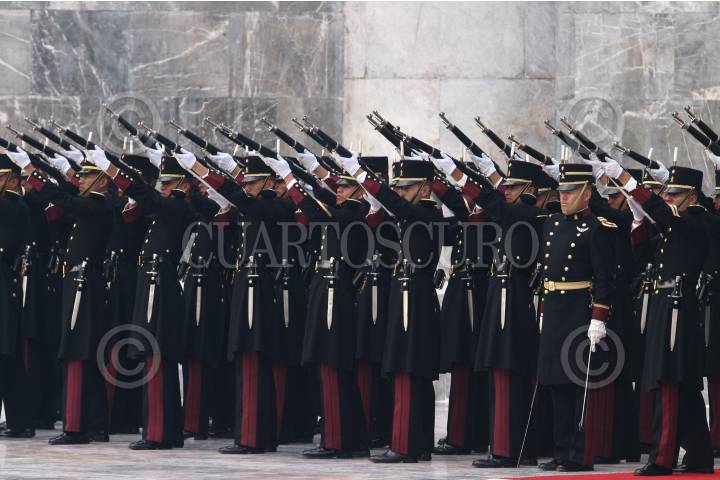 MÉXICO, D.F. 13SEPTIEMBRE2009.- Cadetes del Heroico Colegio Militar disparan sus fusiles durante la ceremonia conmemorativa al CLXII aniversario de la gesta heroica de los Niños Héroes que se realizo en el al Altar a la Patria del Bosque de Chapultepec. FOTO: RODOLFO ANGULO/CUARTOSCURO.COM