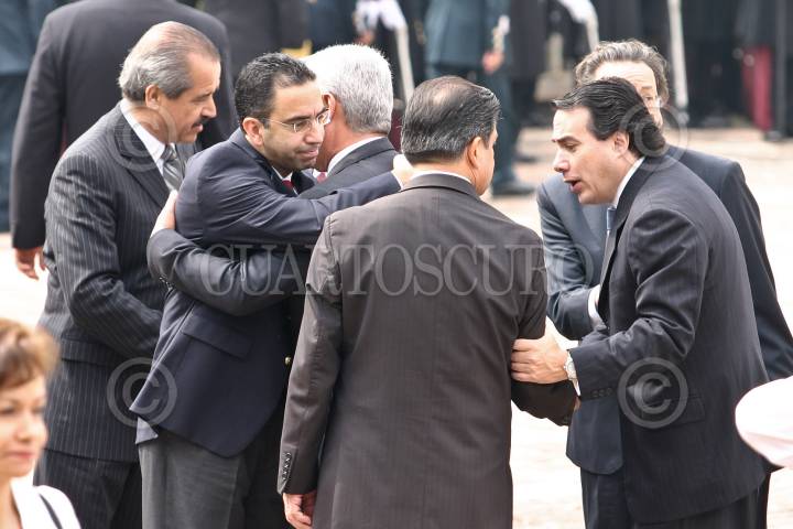MÉXICO, D.F. 13SEPTIEMBRE2009.- José Ángel Cordoba Villalobos, secretario de Salud; Javier Lozano, secretario del Trabajo; Francisco Ramírez Acuña, presidente de la mesa directiva de la Cámara de Diputados; Carlos Navarrete, presidente de la mesa directiva del Senado de la República y Gerardo Ruiz Mateos, secretario de Economía al termino de la ceremonia conmemorativa al CLXII aniversario de la gesta heroica de los Niños Héroes que se realizo en el al Altar a la Patria del Bosque de Chapultepec. FOTO: RODOLFO ANGULO/CUARTOSCURO.COM