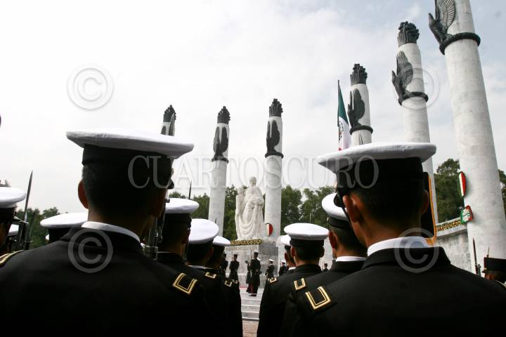 MÉXICO, D.F. 13SEPTIEMBRE2009.- Cadetes del Heroico Colegio Militar durante la ceremonia conmemorativa al CLXII aniversario de la gesta heroica de los Niños Héroes que se realizo en el al Altar a la Patria del Bosque de Chapultepec. FOTO: RODOLFO ANGULO/CUARTOSCURO.COM
