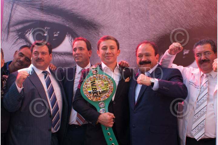 Muaricio Sulaimán, Evelyn Salgado, Julio César Chávez, Chiquita González, Jackie Nava, y Nonito Donaire, durante la 60 edición de la Convención Anual del Consejo Mundial de Boxeo.