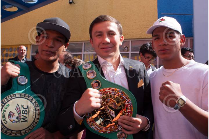 CIUDAD DE MÉXICO, 20NOVIEMBRE2017.-Armando Ahued Ortega, Secretario de Salud de la Ciudad de México, realizó un recorrido por el Hospital Pediátrico Moctezuma, en compañía del Boxeador Kazajo, Gennady Golovkin. Tuvieron una pequeña convivencia con los niños del área de urgencias. Durante el mensaje a medios, Golovkin, mostró su cinturón de campeón del mundo por el WBC. FOTO: JESÚS VERDUGO/ CUARTOSCURO.COM
