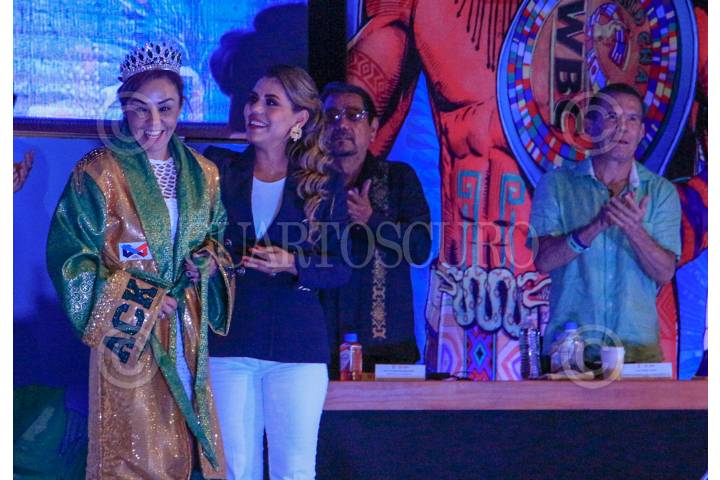 Jackie Nava y la gobernadora Evelyn Salgado durante la 60 edición de la Convención Anual del Consejo Mundial de Boxeo.
