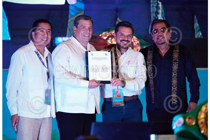 Daniel Zaragoza, Chiquita González, Nonito Donaire, y Jackie Nava, durante la 60 edición de la Convención Anual del Consejo Mundial de Boxeo.