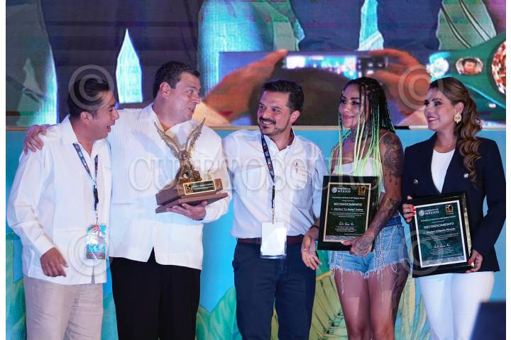 Zoé Robledo le entregó un reconocimiento a Mariana "La Barby" Juárez, durante la 60 Convención Anual del CMB.