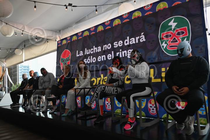 Conferencia de prensa encabezada por Sofía Alonso y que estuvo acompañada por distintos luchadores.