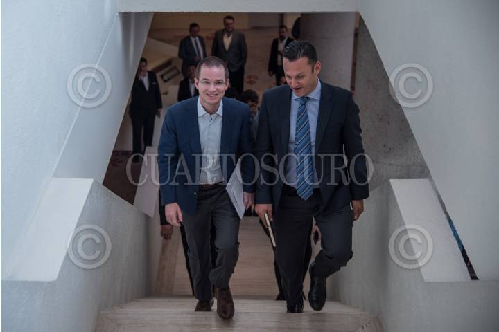 CIUDAD DE MÉXICO, 24MAYO2018.- Ricardo Anaya, candidato a la presidencia por la coalición “Por México al Frente”, y el diputado Gerardo Salas, durante su llegada a la reunión privada con el Consejo Nacional Agropecuario. FOTO: MARIO JASSO /CUARTOSCURO.COM