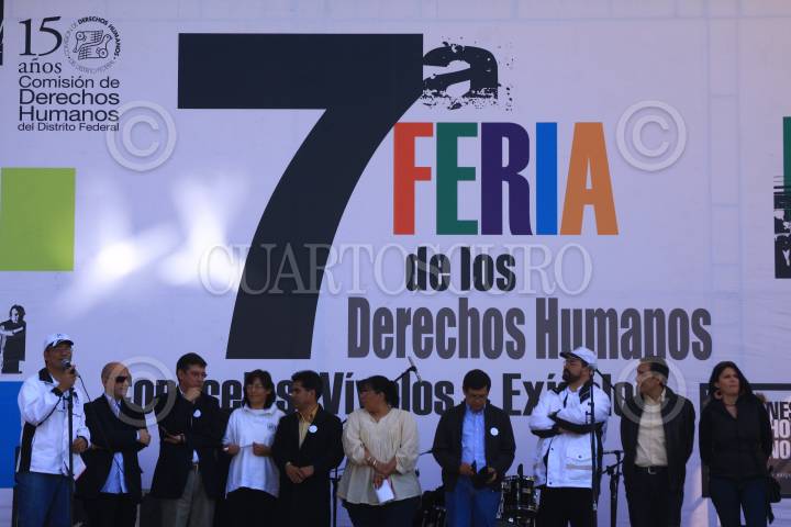 MÉXICO, D.F., 07DICIEMBRE2008.- El Omnbusman capitalino Emilio Alvarez Icaza Longoria, acompañado del reperesentante personal del Jefe de gobierno Juan Jose Garcia Ochoa, Juan Bustos y Victor Hugo Cirigo , ambos diputados inauguraron la séptima Feria de los Derechos Humanos en la plancha del zócalo. En la inauguración se contó con la presencia especial de Jean Batiste Giovan representante de la ONU en México.La feria contara con conciertos, obras de teatro , así como exposiciones fotográficas y una gran cantidad de actividades para fomentar la convivencia y el respeto entre las personas. FOTO: COSME RADA/CUARTOSCURO.COM
