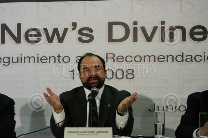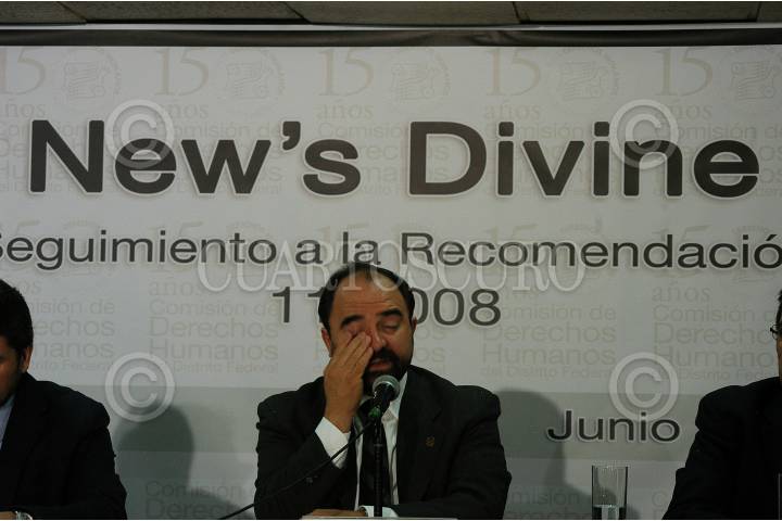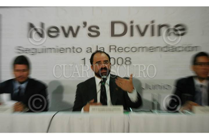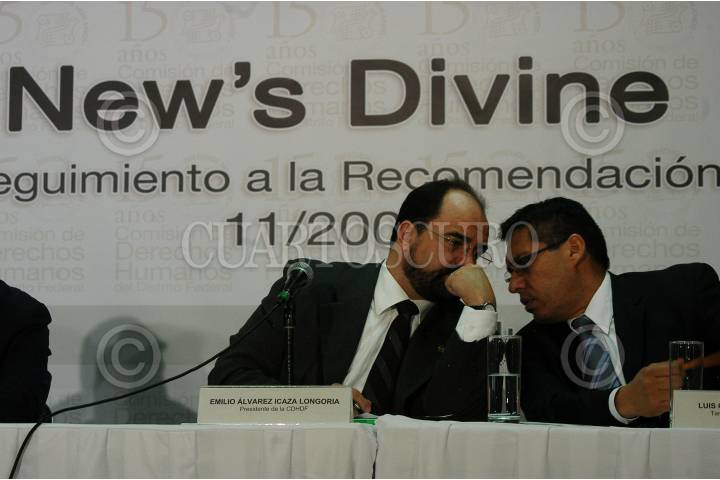 MÉXICO D.F., 19JUNIO2009.- Emilio Álvarez Icaza, Presidente de la Comisión de Derechos Humanos del D.F. (CNDHDF) acompañado de Luis Javier Vaquero Ochoa, Secretario Ejecutivo, Luis Gonzáles Placencia, Tercer Visitador de la CNDHDF, dio a conocer el informe especial sobre violaciones a los derechos humanos en el caso New´s Divine. FOTO: GUILLERMO PEREA/CUARTOSCURO.COM